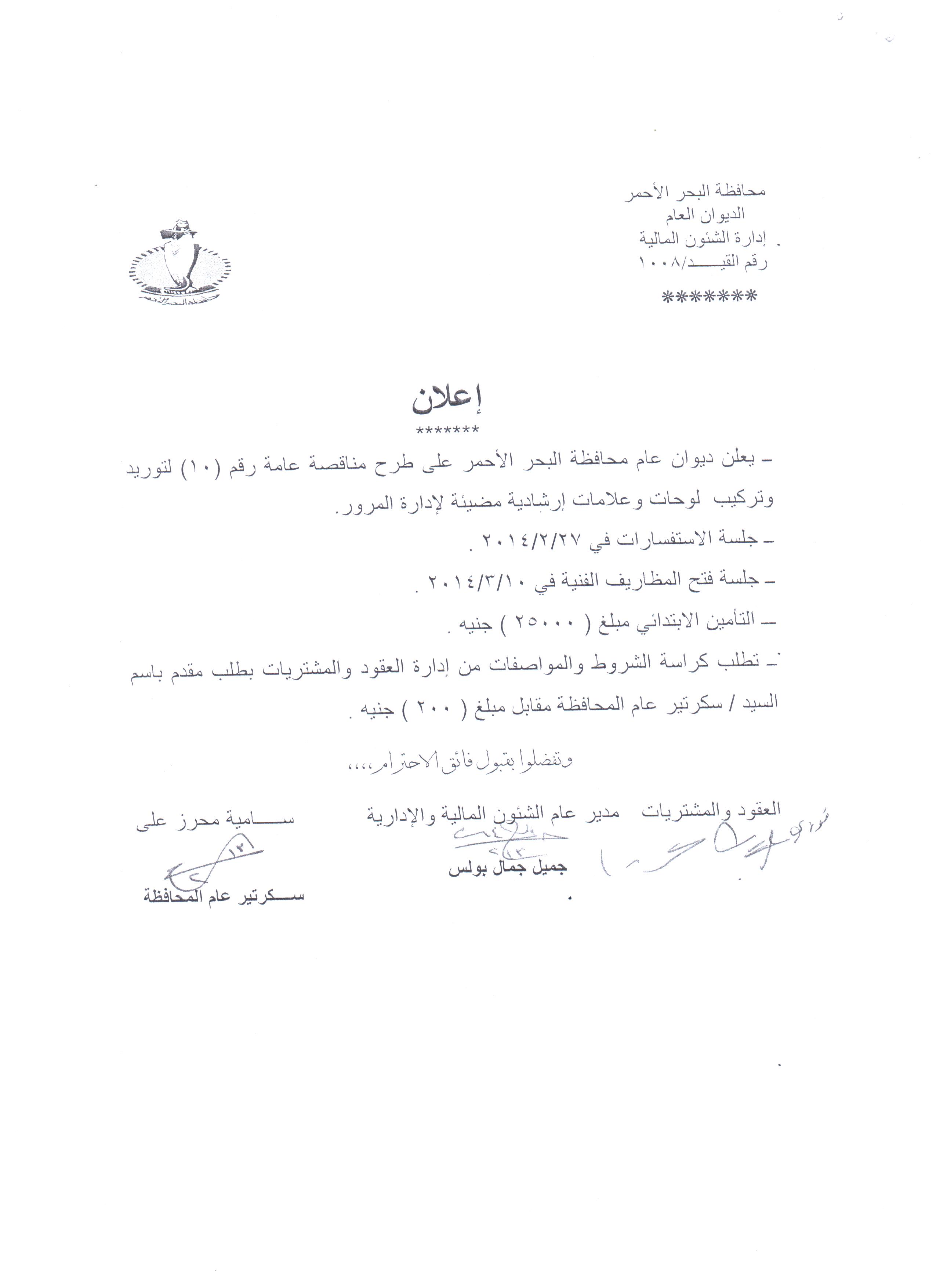 مزايدة محلية لتأجير محل رقم 3 بالمجمع الخدمى بمدينة القصير